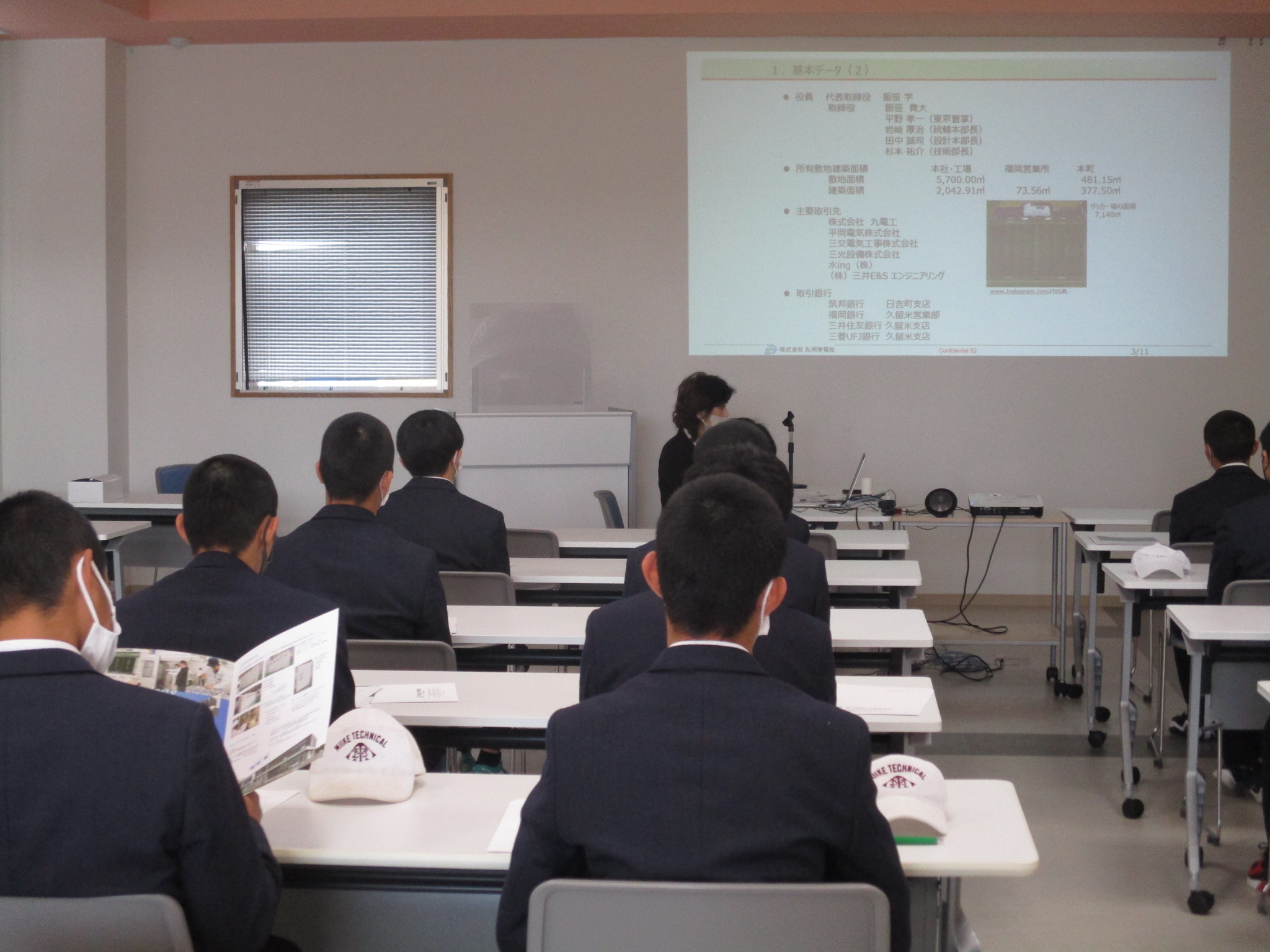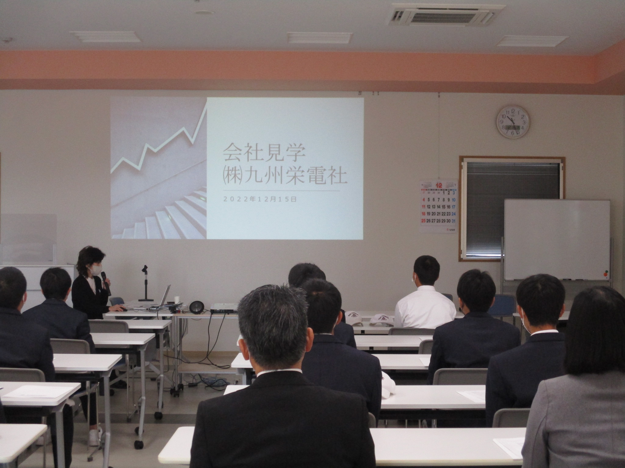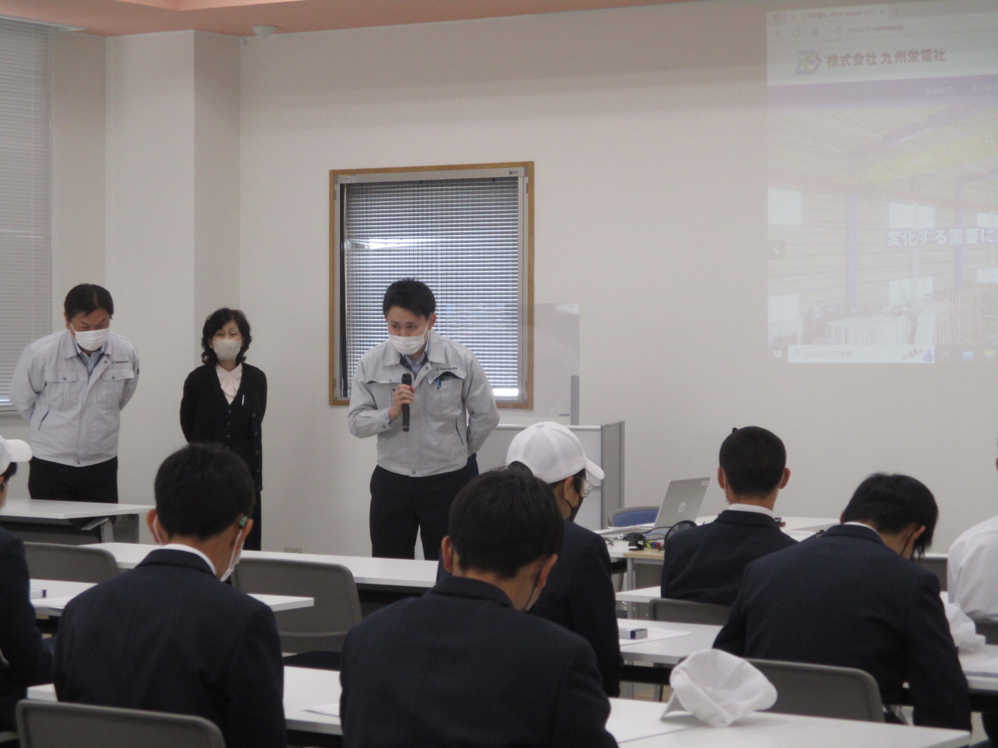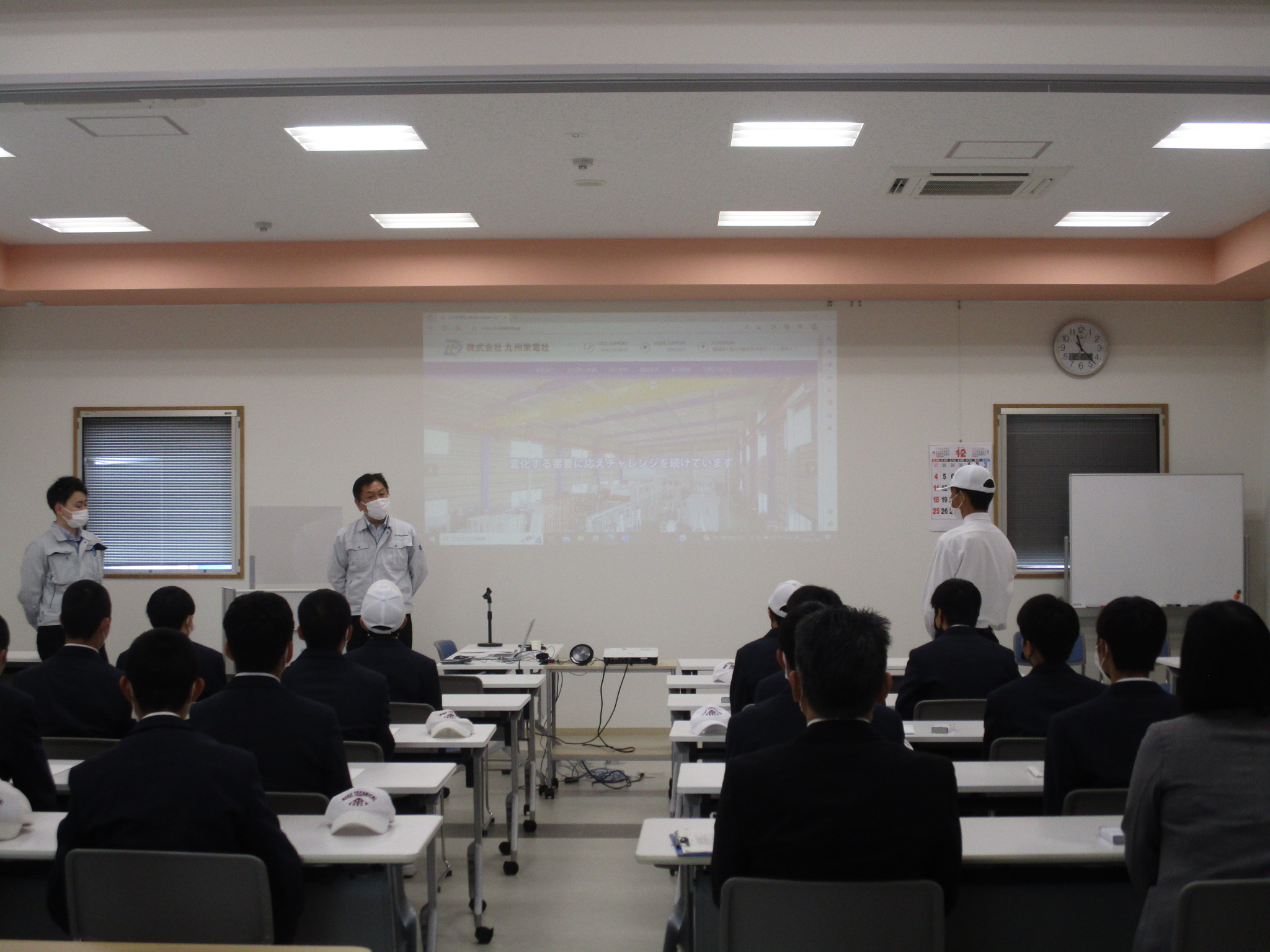 当社では、前回に引き続き、2022年12月15日に県立三池工業高等学校の1年生生徒さん約22名を会社見学にて受入を行いました。